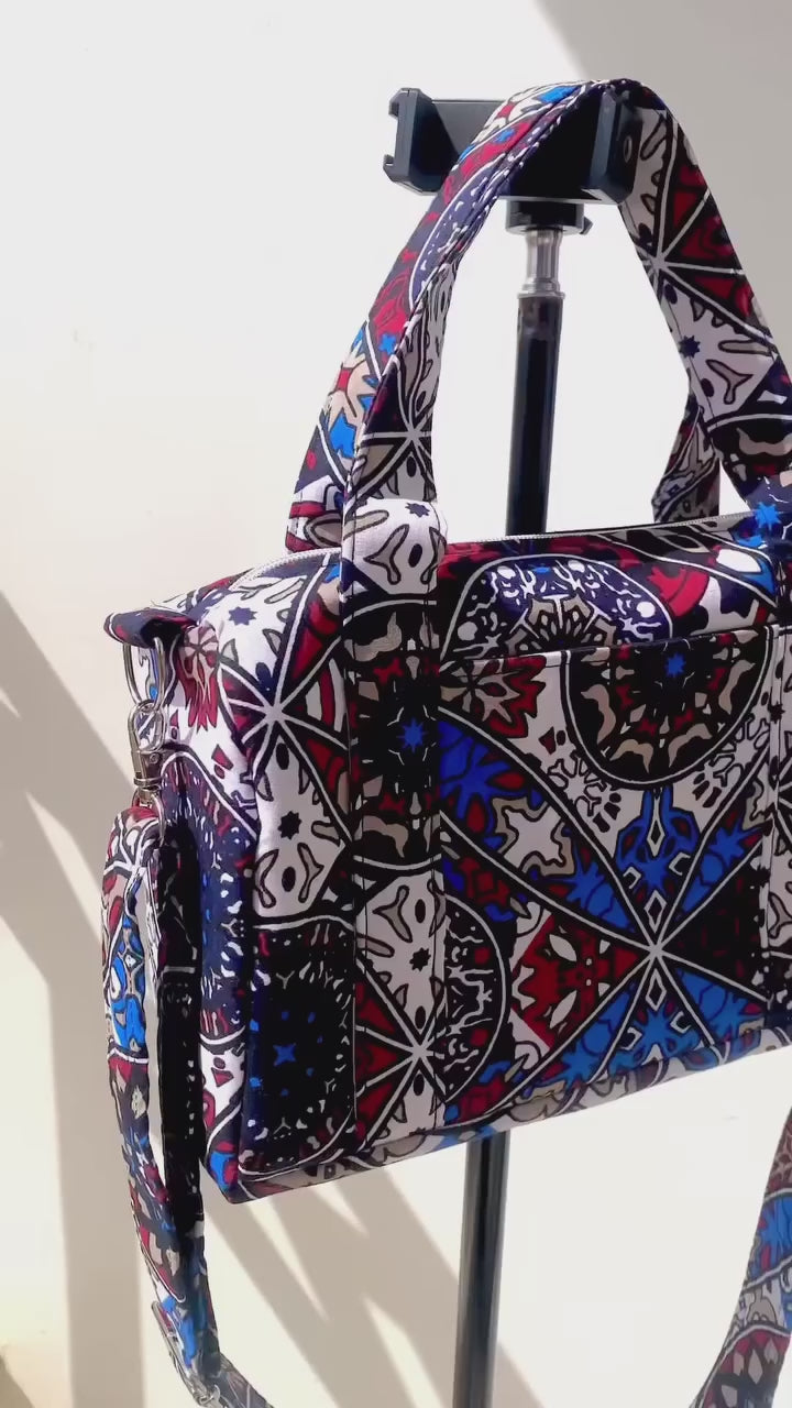 This mini duffel bag is the perfect grab-and-go accessory for all your adventures. Made with 100% cotton, it's both durable and stylish. Its unique design is sure to stand out and make a statement. Take it with you on your next journey and experience the convenience and style it offers!